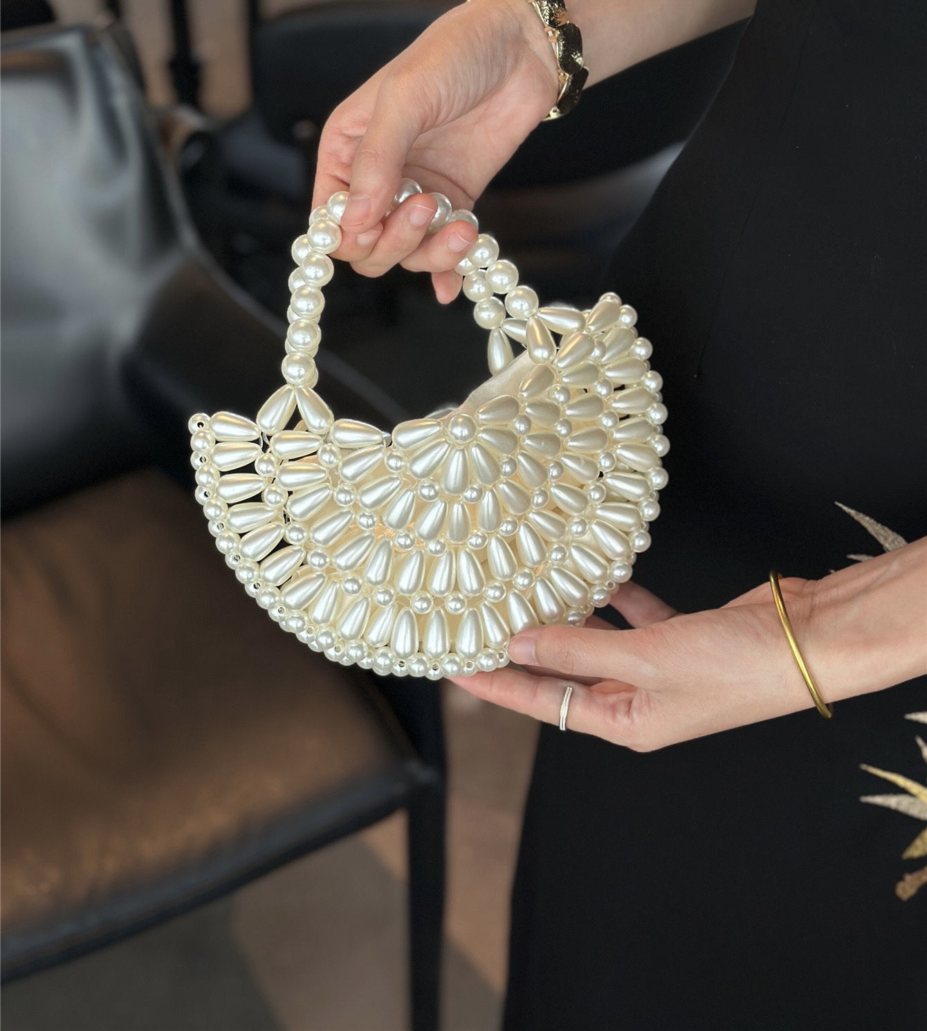 Elevate your evening ensemble with this exquisitely hand-woven pearl crescent bag. Featuring an artful dumpling-shaped silhouette crafted from shimmering faux pearls, this retro French-style piece blends timeless elegance with modern versatility. The intricate beadwork creates a luminous, iridescent finish that catches the light, while the compact, curved design offers comfortable hand-carrying. Equipped with a detachable strap, it seamlessly transforms from a sophisticated clutch to a crossbody bag, making it the perfect accessory for galas, weddings, date nights, or stylish everyday outings. A true statement of understated luxury, this pearl moon bag adds a touch of refined glamour to any outfit.