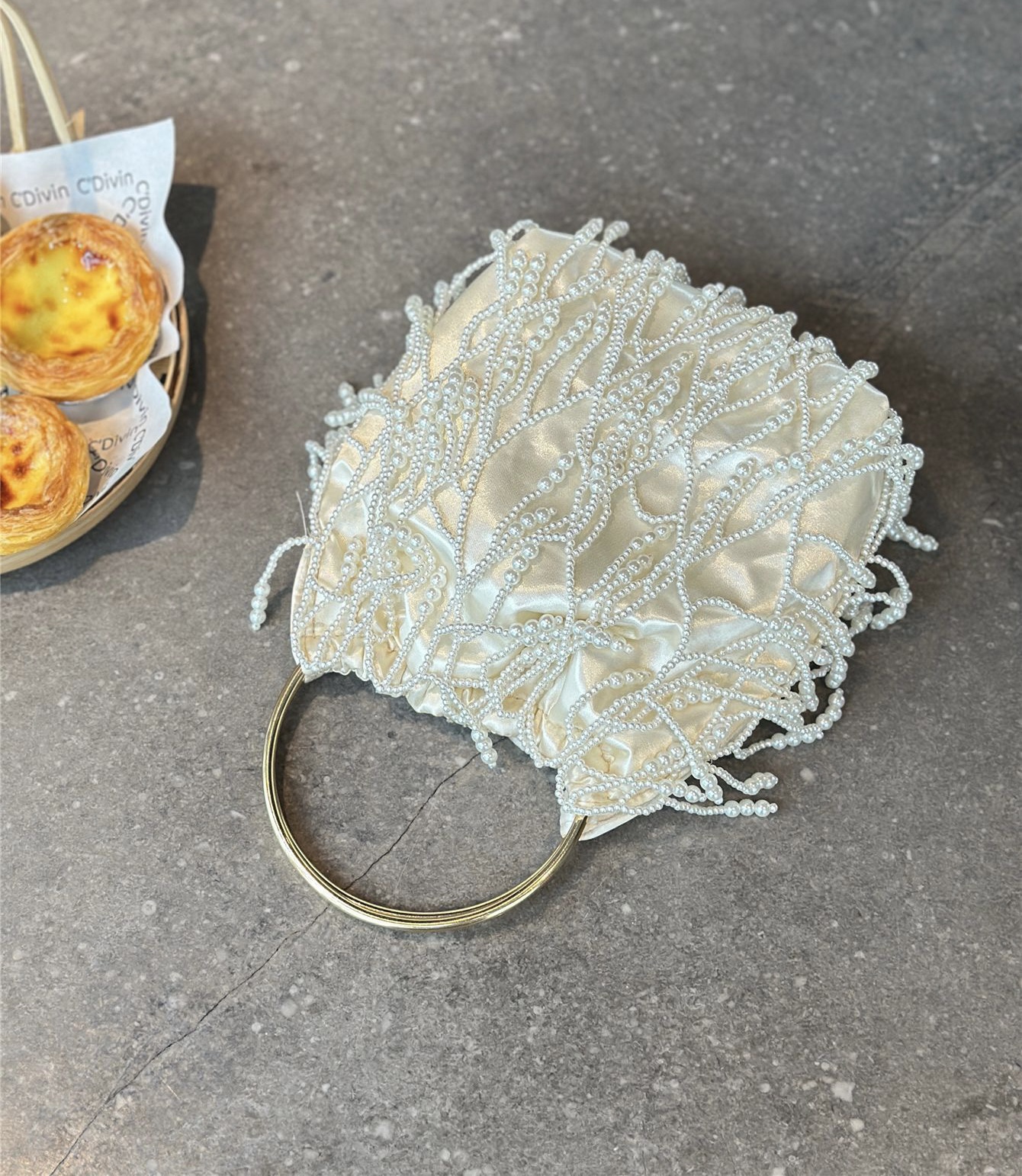 Crafted with meticulous hand-beaded craftsmanship, this new Chinese-style evening bag features a lustrous satin base adorned with cascading pearl tassels and teardrop-shaped pearl accents, creating a glamorous, flowing silhouette. The polished gold metal ring handle offers a sleek, elegant carry, while the soft drawstring closure keeps essentials secure. Perfect for pairing with qipao, traditional dresses, or evening gowns, it elevates weddings, banquets, and upscale parties with timeless Eastern charm and modern luxury.