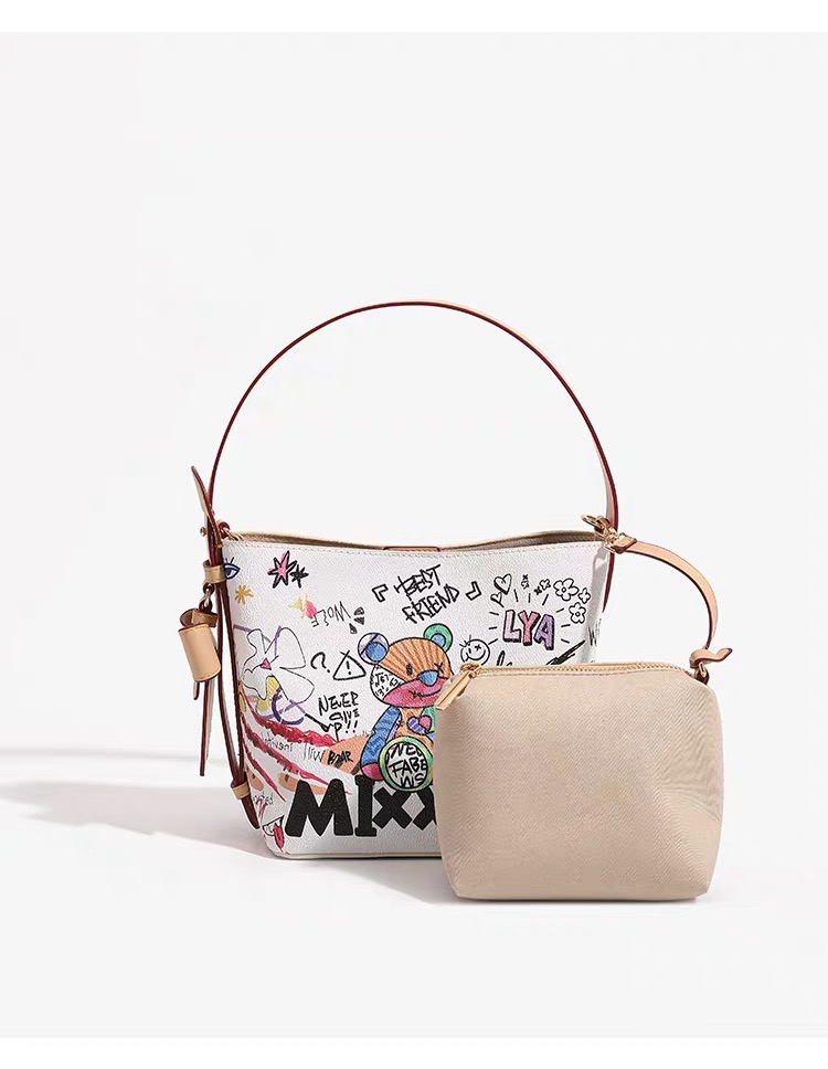 Elevate your style with this edgy, graffiti-inspired bucket bag! Crafted for the modern trendsetter, this piece blends streetwear cool with everyday functionality. Featuring bold, hand-drawn artwork and durable leather construction, it’s designed to stand out while keeping your essentials secure. The spacious interior fits your phone, wallet, and beauty essentials, making it perfect for on-the-go days. Whether you’re hitting the city or meeting friends, this unique bucket bag delivers head-turning style and practicality in one. Stand out from the crowd—wear your personality with every carry!