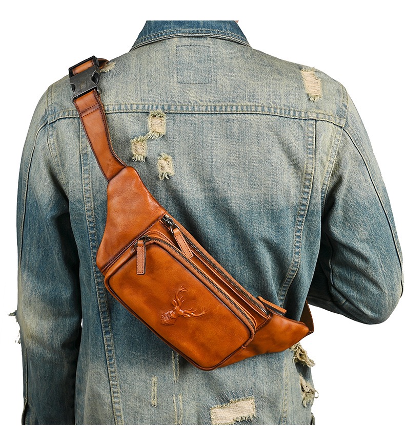 Crafted from premium top grain leather, this men’s vintage fanny pack combines timeless retro charm with generous storage capacity. Multiple zippered compartments keep your phone, wallet, and small essentials secure and organized, while the adjustable waist strap ensures a comfortable fit for all-day wear. Whether you’re hitting the gym, exploring the city, or traveling, this durable leather waist bag is the perfect hands-free companion for the modern man who values style and practicality.