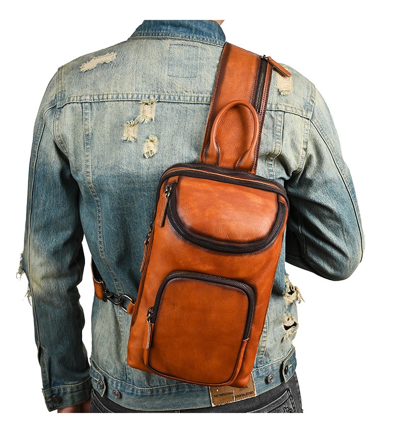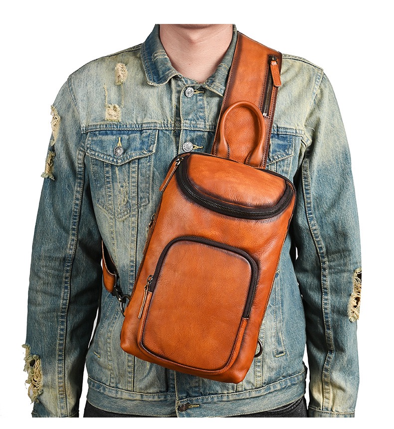 Vintage Leather Trendy Men’s Chest Bag for Commute
