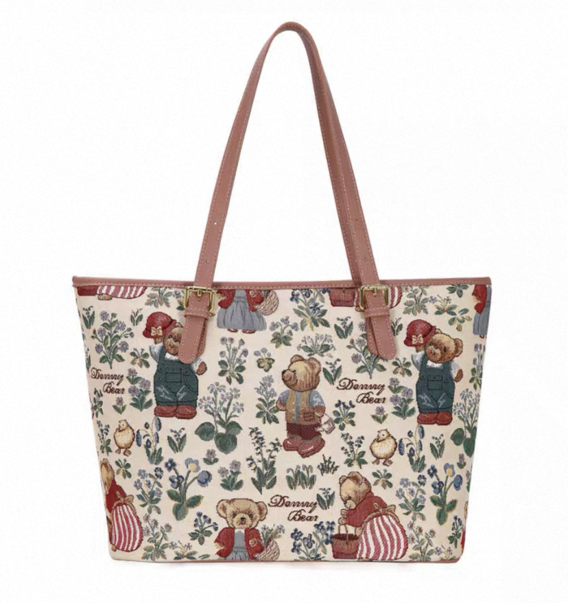 Inspired by idyllic countryside charm, this tote bag features a whimsical pattern of teddy bears and delicate botanical prints. Crafted with soft, durable materials and a spacious silhouette, it blends nostalgic vintage aesthetics with modern functionality. Designed to evoke warm, carefree moments, it’s the perfect companion for daily commutes, weekend getaways, or leisurely afternoons—turning every errand into a gentle escape to a whimsical bear garden.